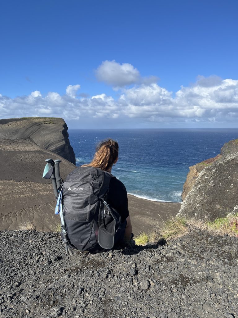 Dan gaat de route weer verder door het bos en beklimmen en dalen we een aantal kleinere vulkanen. De route eindigt in het bizarre maanlandschap van Capelinhos.